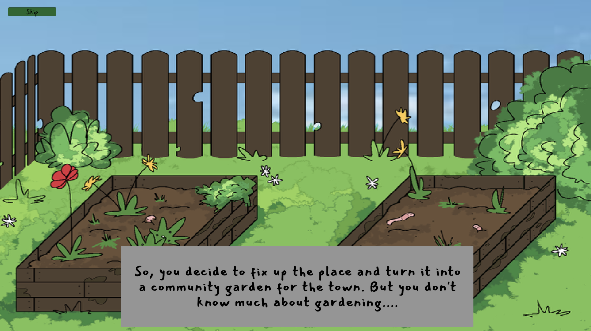 In a not too far future, the USA has fallen into another Great Depression. A few years before, under a tyrannical dictator, AI data plants appeared in small towns across the country. They sucked water and they stole jobs, leaving a water and food shortage and the largest wealth disparity ever seen in the US. About a year into this depression a distant relative of yours dies, leaving you an old farm house in Oregon. Upon investigation, in their backyard, you find an old rundown garden and seed packets. You don't know much about gardening, but you decide to try to build a garden for the community. You may hit some bumps, but that is what learning is for.